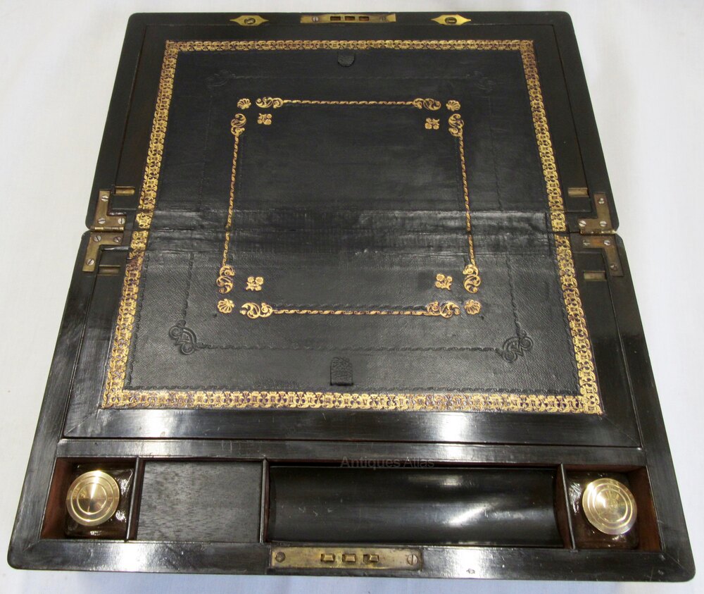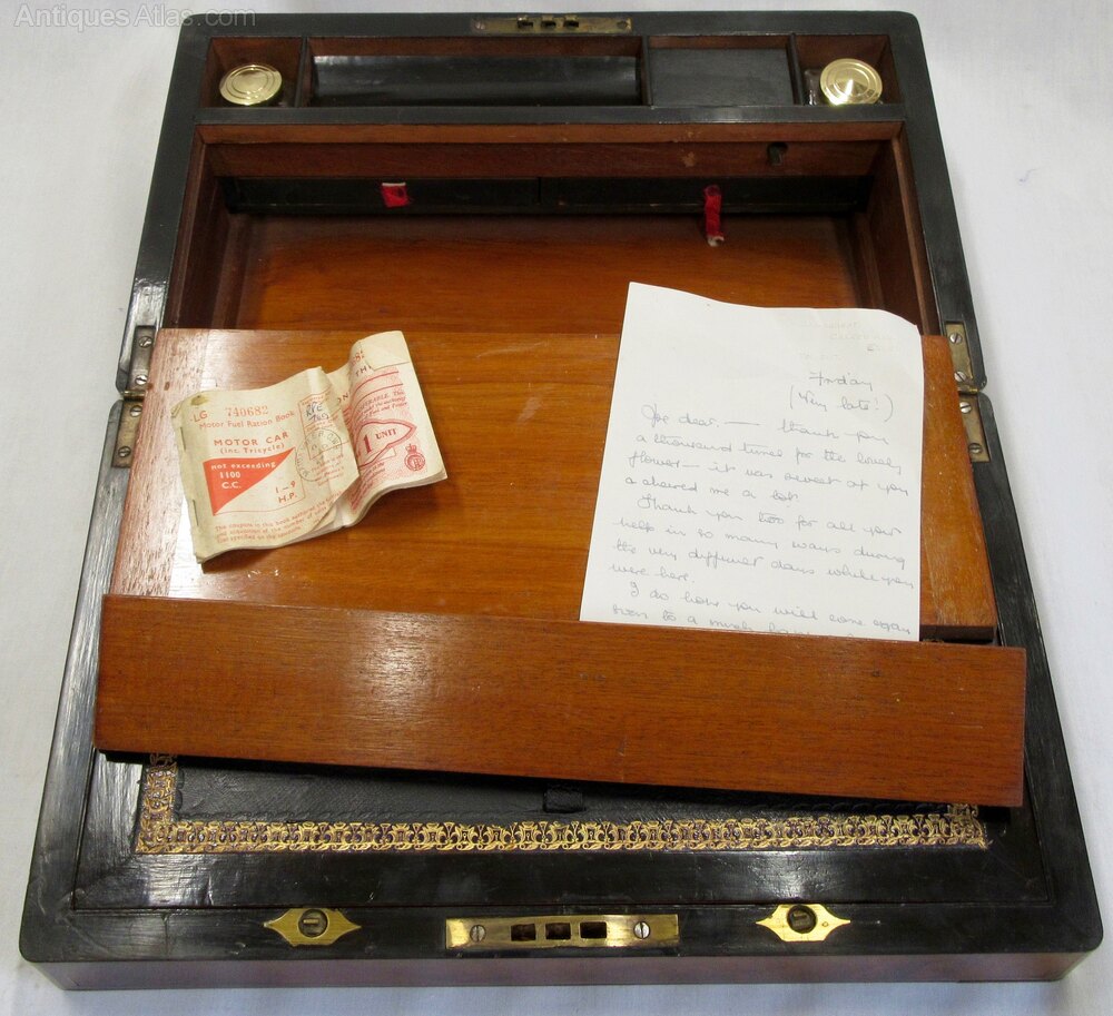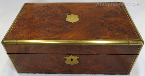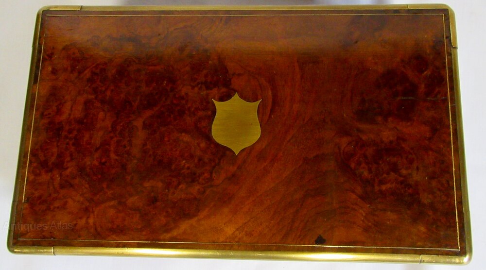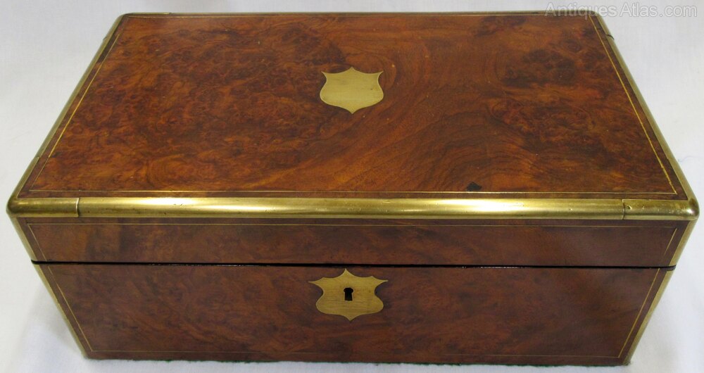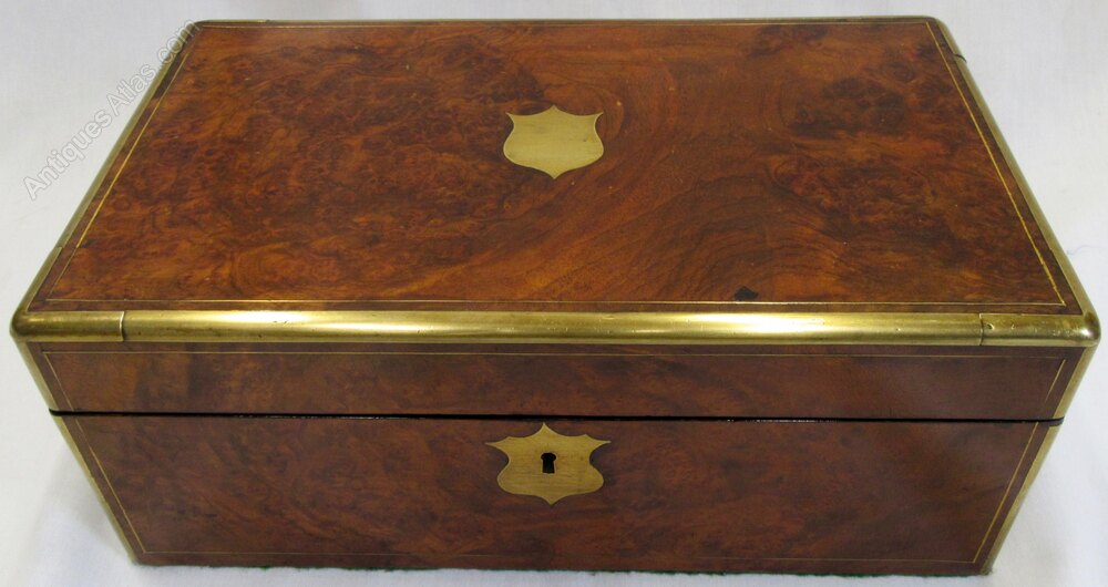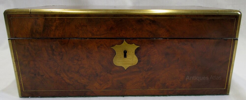 Victorian Burr Walnut Brass Bound Writing Slope