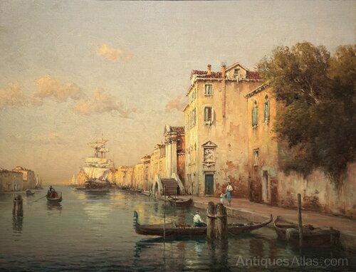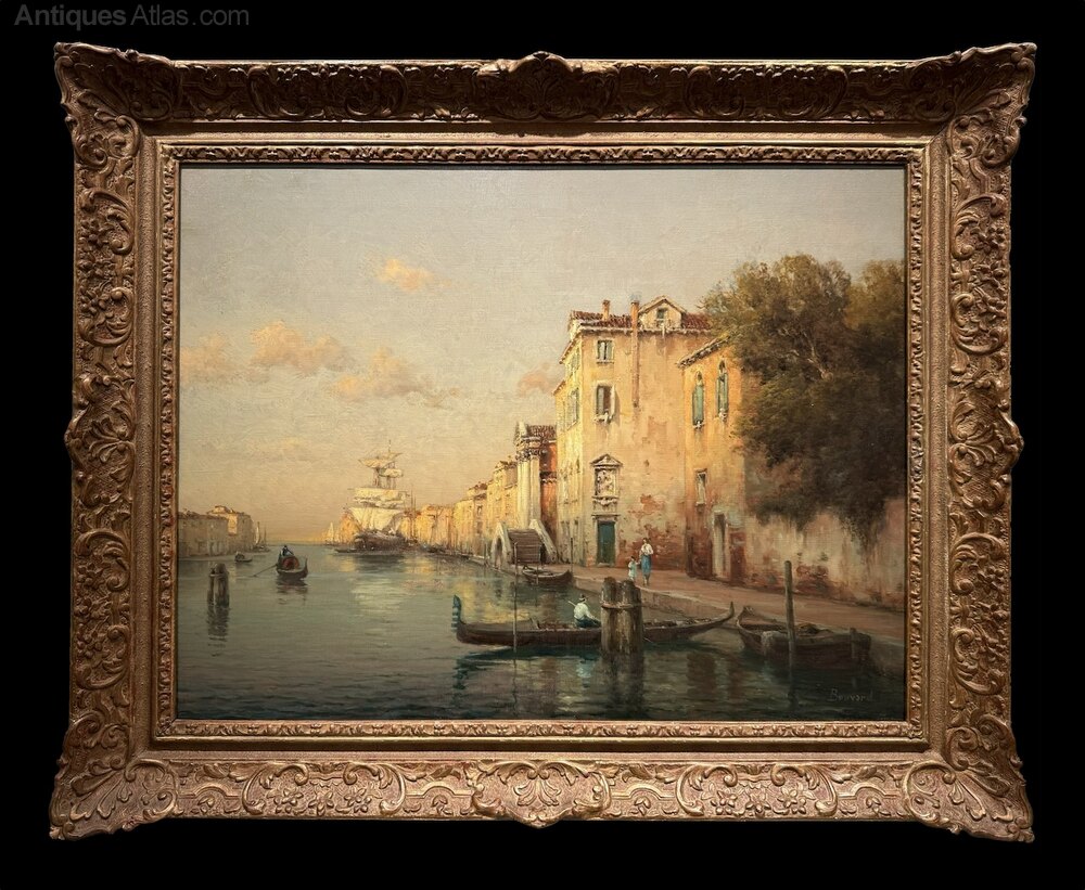 He returned to the city many times during the following years and specialized in painting Venetian views. For the English market he painted under the pseudonym Antoine Bouvard and for the French market Marc Aldine. His two principal galleries were the Whitgift Gallery in Croyden and the Gallery Morisco in Nice, although he also exhibited at the Galerie Paul Claux in Paris.