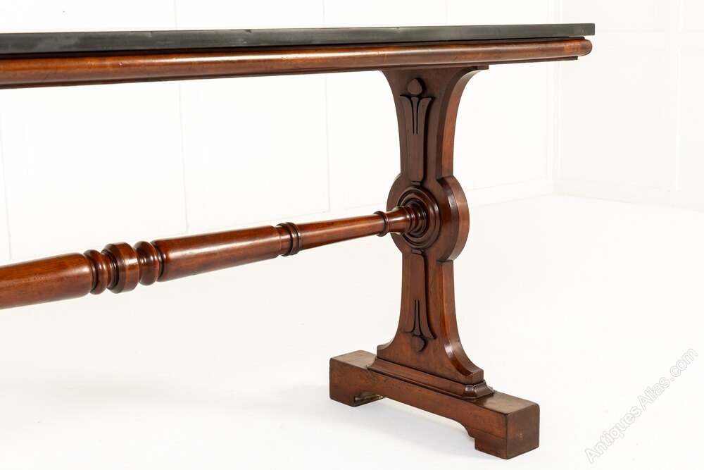 Large 19th Century English Mahogany Library TableA Large 19th Century English Mahogany Library or Writing Table with Marble Top.