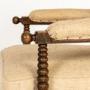 A good sized, 19th century bobbin chair with bobbin turned spindle back rest, arms and front legs. Painted in simulation of rosewood, it has upholstered arm pads and two squab cushions, all newly upholstered to an under finish ready for final upholstery. The uprights, front legs, arm supports and arm finials are all bobbin turned whereas the back legs and seat rails are all plain.