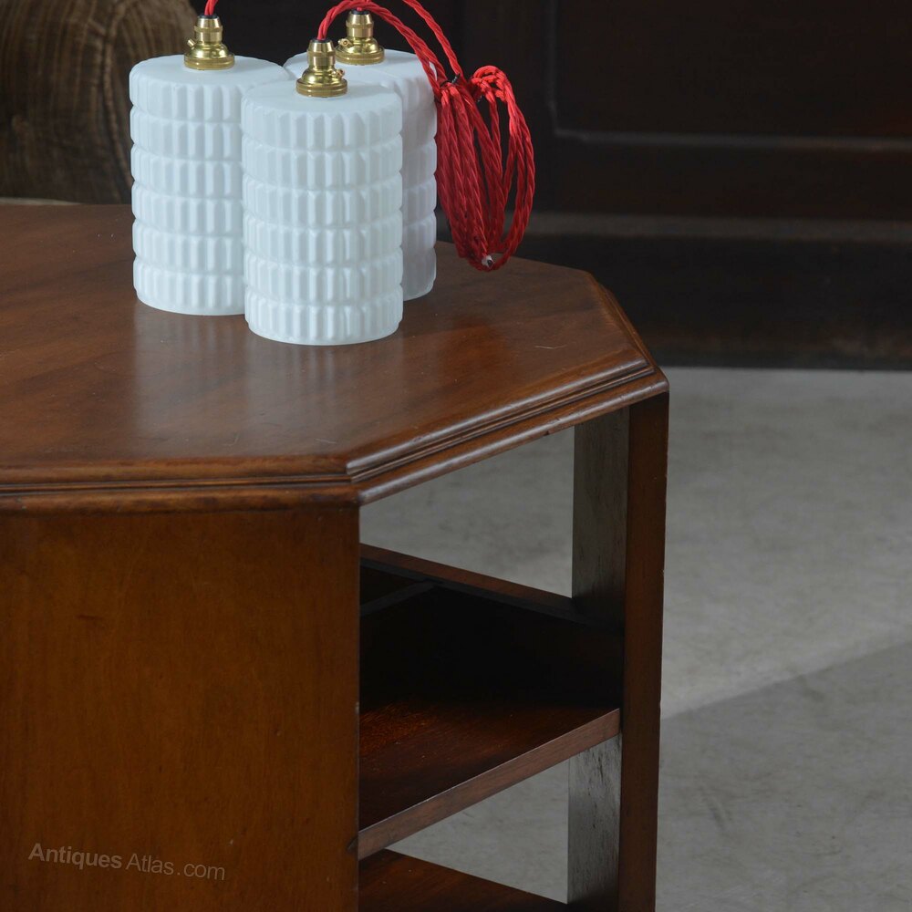 Heals Style Octagonal Side TableWalnut with a moulded edge, the middle shelf with dividers to hold books.