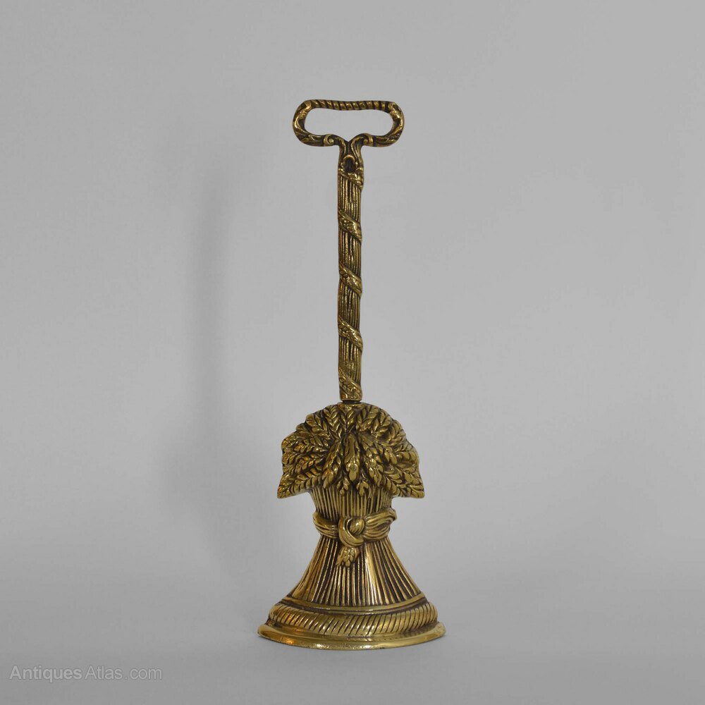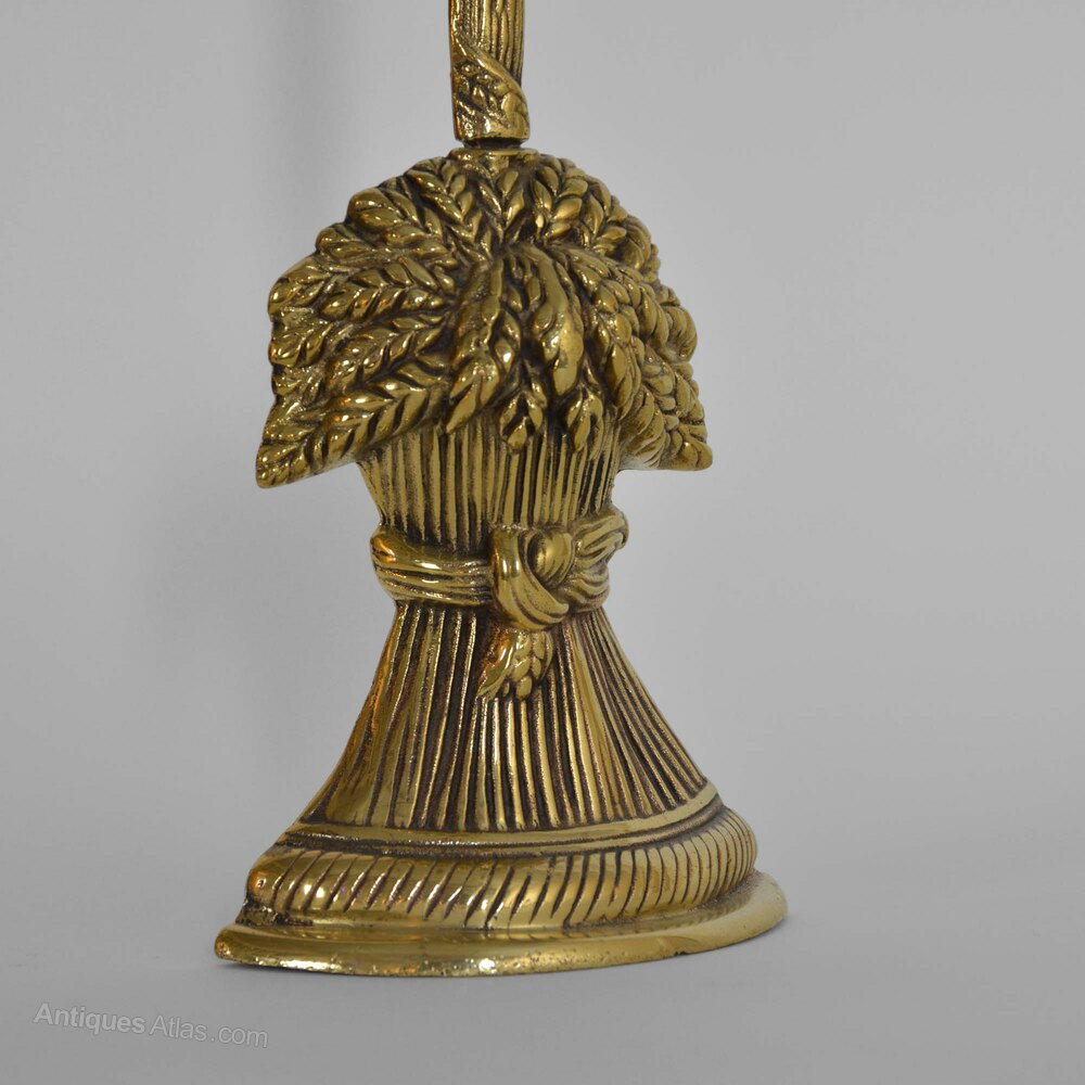 Victorian cast brass doorstopIn the form of a wheat sheaf with a decorated column and loop carrying handle.