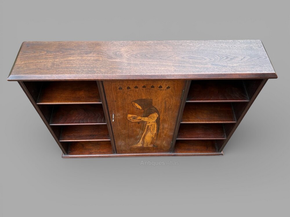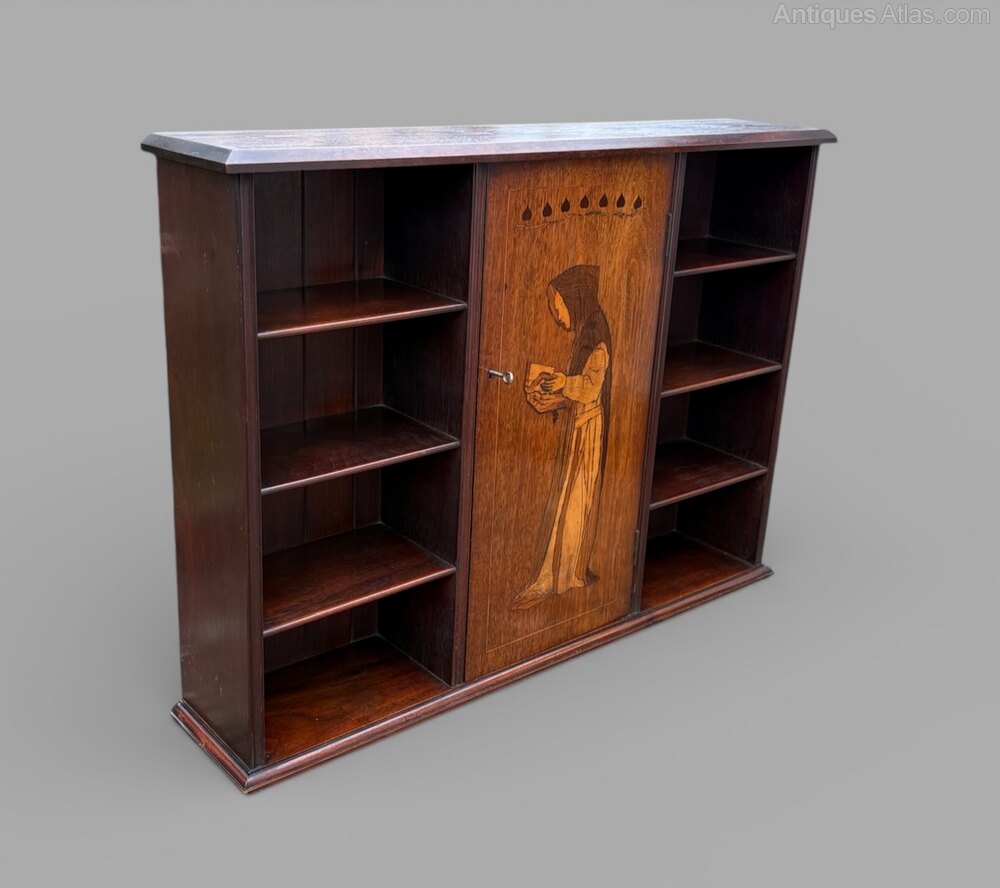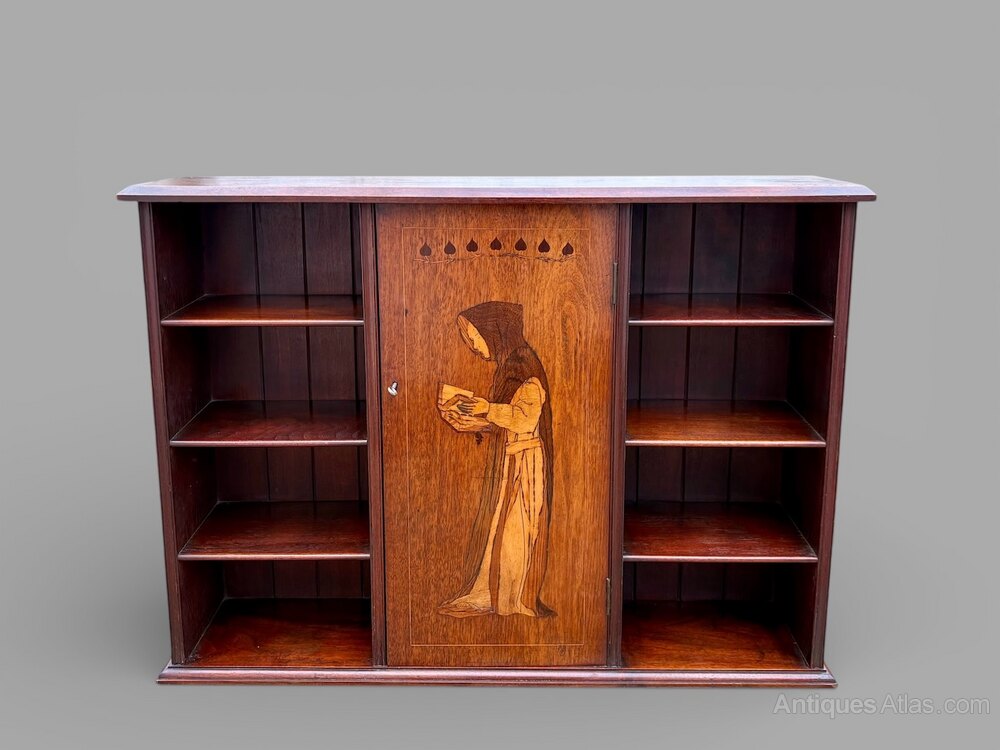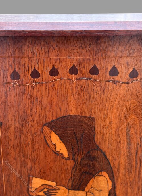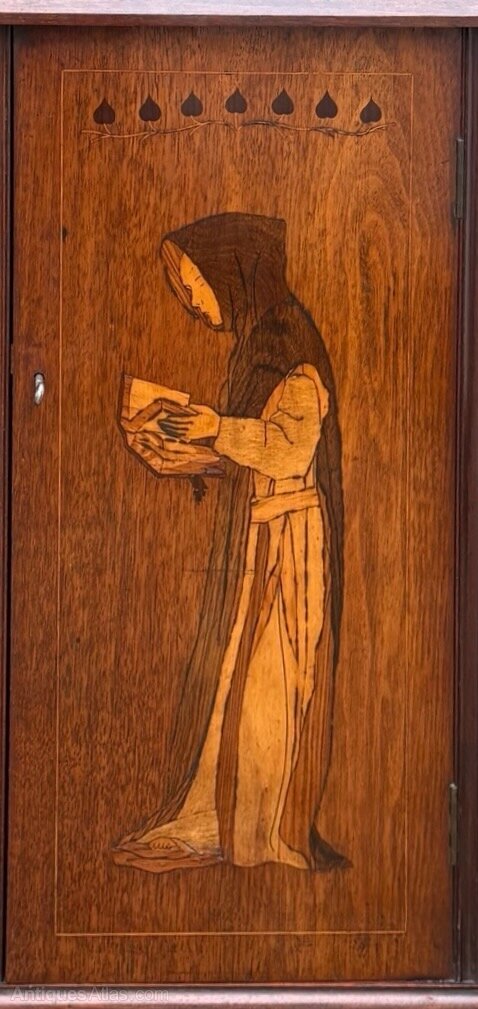 Arts & Crafts Inlaid Wall Cabinet Monk Reading