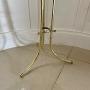 A charming late Victorian brass and oak magazine stand raised on an elegant tripod base. The stand features a finely made brass gallery with multiple divided sections ideal for organising magazines, sheet music, or correspondence. The rich oak platform provides a warm contrast to the polished brass uprights giving the piece both decorative appeal and practical functionality.The tripod support is formed from three graceful swept brass legs, united by a circular stretcher for stability and terminating in small brass feet. Light and refined in appearance, yet sturdy in construction, this versatile stand sits beautifully in a drawing room, study, library, or hallway. Its combination of brass and oak is particularly attractive and characteristic of late Victorian taste.