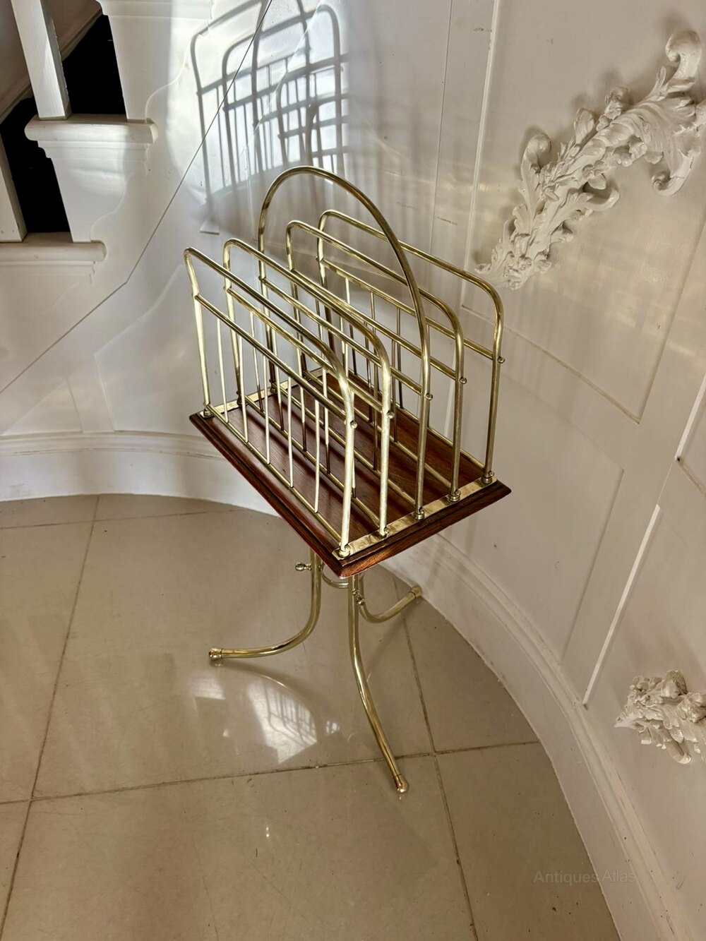 Antique Quality Brass and Oak Magazine Stand
