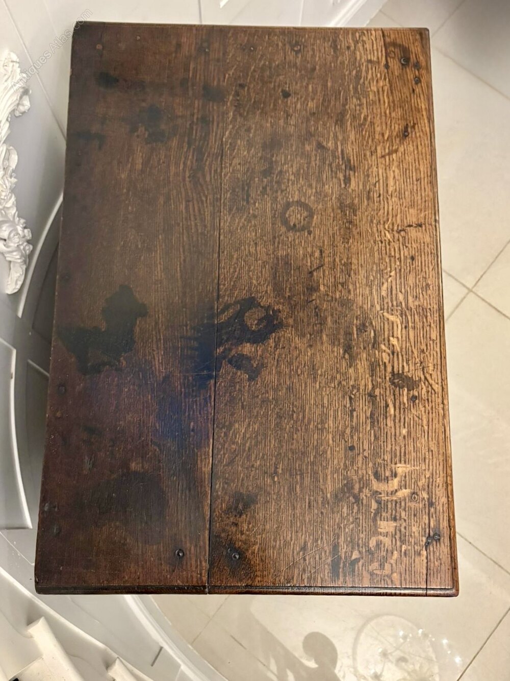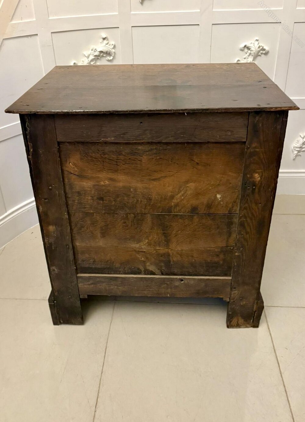 This piece captures the bold architectural form typical of the late 17th century with its strong lines, geometric panels, and richly coloured timber. The fabulous dark oak colour and surface texture enhance its timeless appeal and authenticity.