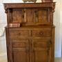 A highly decorative antique carved oak court cupboard featuring classic Ipswich carving—a regional East Anglian style inspired by 17th-century Suffolk furniture. Crafted in solid oak, the cupboard displays richly carved detail throughout including fan-shaped friezes, stylised rosettes and diamond lozenges, all characteristic of this distinctive local tradition.The upper section offers three fielded cupboard doors flanked by turned supports providing attractive display or storage space. Below sit two carved drawers over a double-door lower cupboard giving the piece excellent practicality while maintaining a compact and well-balanced form.