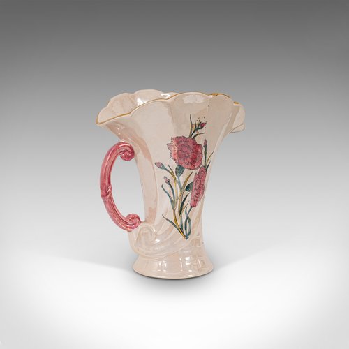 This is a vintage decorative pouring jug. An English, ceramic breakfast milk pot in Carnation pattern, dating to the mid 20th century, circa 1950.Beautiful, mid-century breakfast table pottery