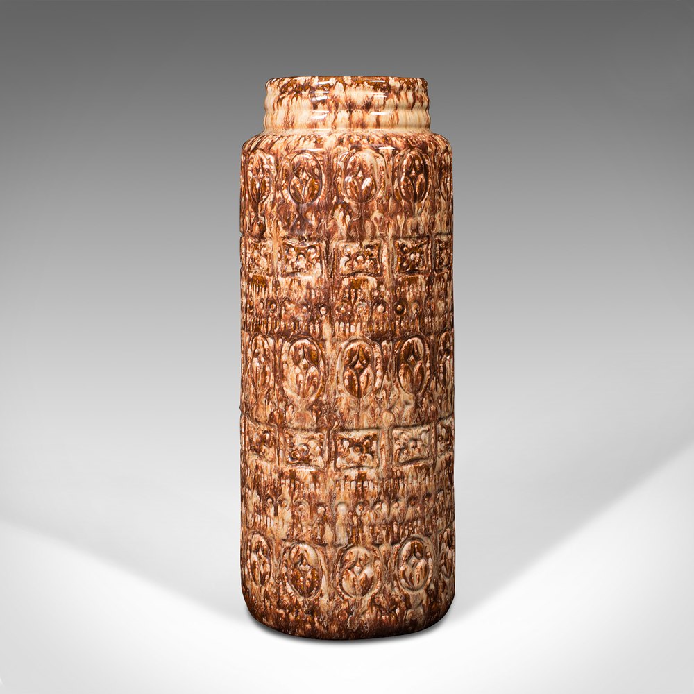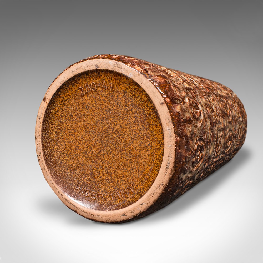 This is a vintage flower vase. A German, ceramic lava decorative hall stick stand, dating to the mid 20th century, circa 1960.Graced with a distinctively mottled appearance