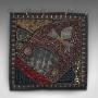 This is a small vintage decorative wall panel. A Middle Eastern, ornate square textile frieze with sequins and faux gemstones, dating to the late 20th century, circa 1980.Distinctively decorated square panel with eye-catching finish