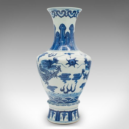 This is a distinctive vintage white and blue vase, with superb Chinese dragon decor. Delivered polished and ready to display.
