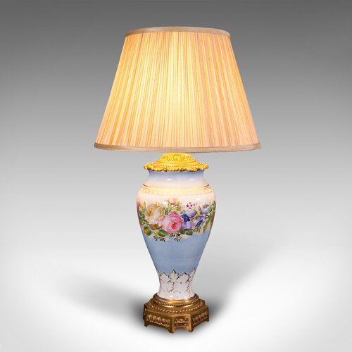 Vintage Cafe Lamp, French, Ceramic, Gilt Metal