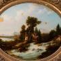 Hand-painted landscape to reverse of glass, redolent of the Continental school