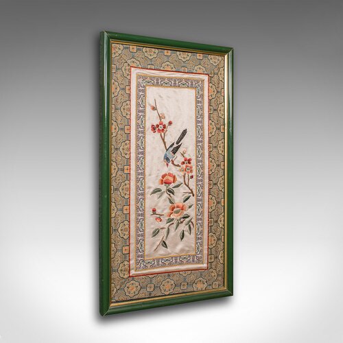 This vintage framed silk panel is a finely executed example of Japanese textile artistry, and would make a graceful addition to any decorative wall display or textile collection. Delivered ready to mount.