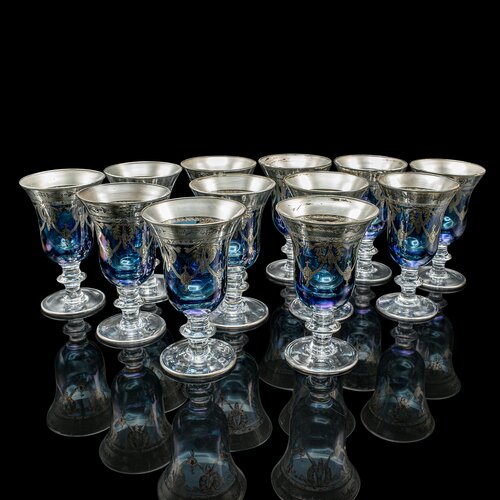 Our Stock # 25481This is a charming set of 12 vintage wine goblets. An Italian, handmade champagne or liqueur glass collection, dating to the late 20th century, circa 1990. A highly decorative, large ensemble, ideal for entertaining or display.
