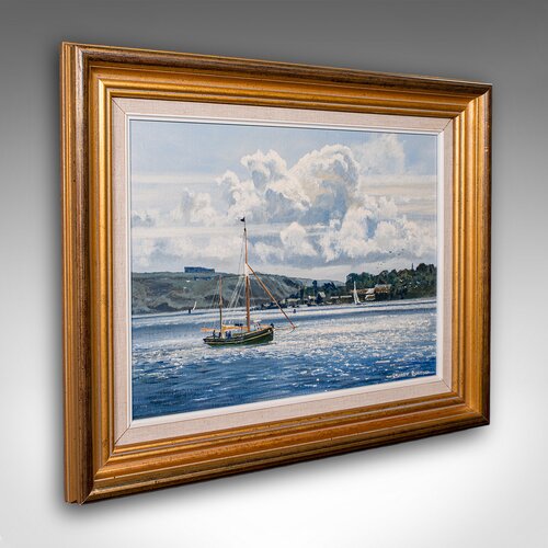 Our Stock # 25772This is a vintage Plymouth Sound painting. An English, framed oil on canvas nautical picture by Stuart Bolton, dating to the late 20th century, circa 1970. A delightful seascape with appealing colour and confident technique.