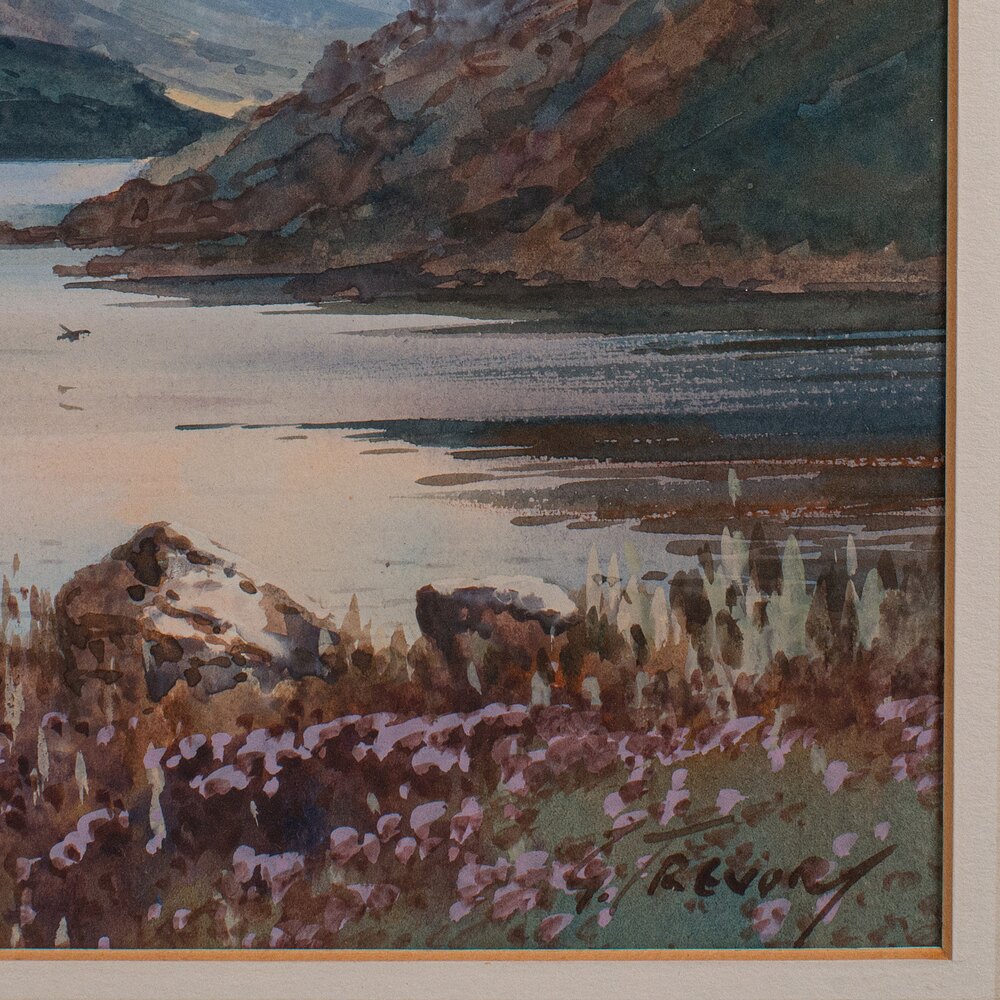 Our Stock # 25776This is an antique Loch landscape painting. A Scottish, framed watercolour, dating to the early 20th century, circa 1920. An appealing Highland study, rich in atmosphere and regional character.