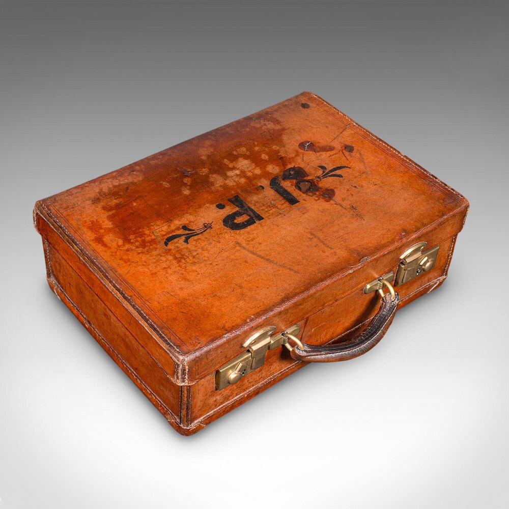 Our Stock # 25807This is a small antique clerk's suitcase. An English, leather attaché case, dating to the late Victorian period, circa 1900.