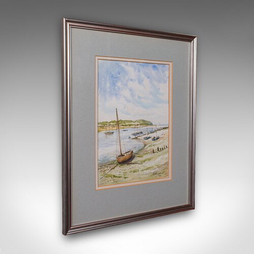 Our Stock # 25879This is a vintage beach landscape painting. An English, watercolour with nautical interest, dating to the late 20th century, circa 1991.