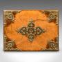 Lid adorned with superb brass quarterfoil plate and four corner mounts