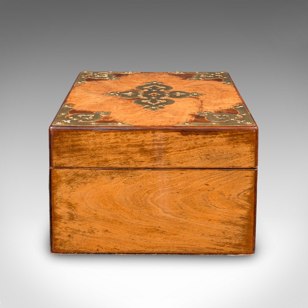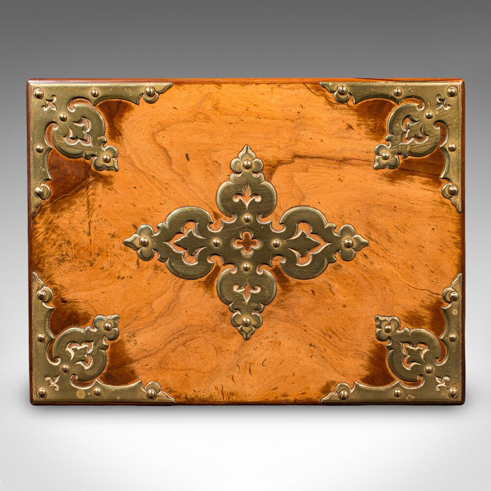 Our Stock # 25808This is an antique Gothic revival sewing case. A Scottish, walnut and brass work box, dating to the Victorian period, circa 1870.