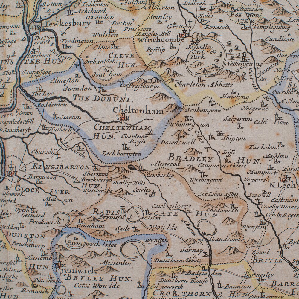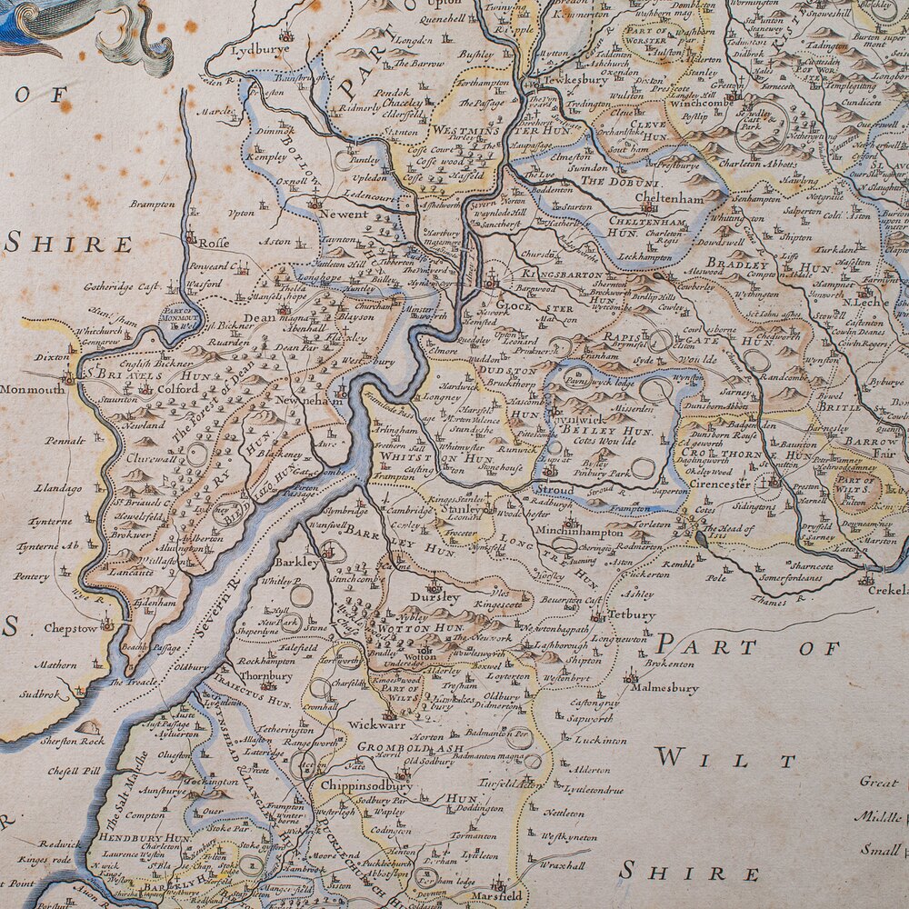 Superb atlas lithography of Gloucestershire and its county detail as it stood circa 1700