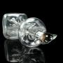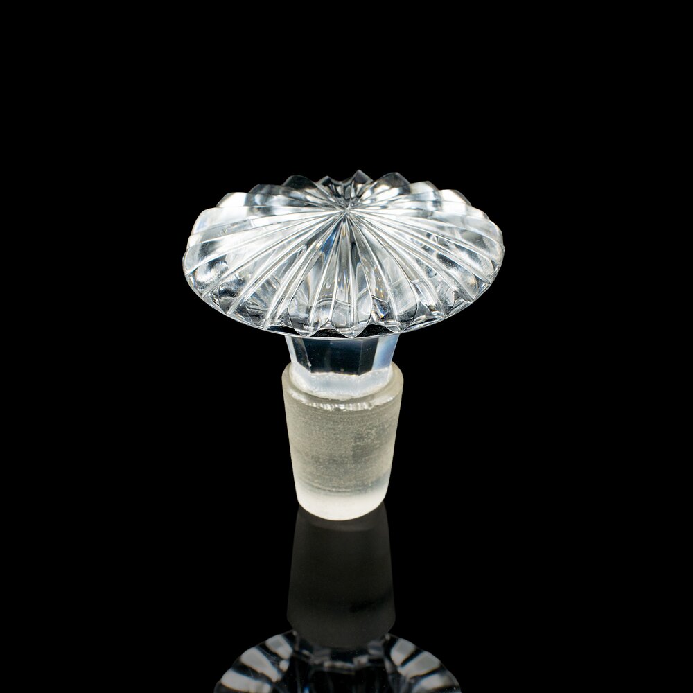 Faceted toadstool stopper, sitting neatly within the flared silver collar for secure closure