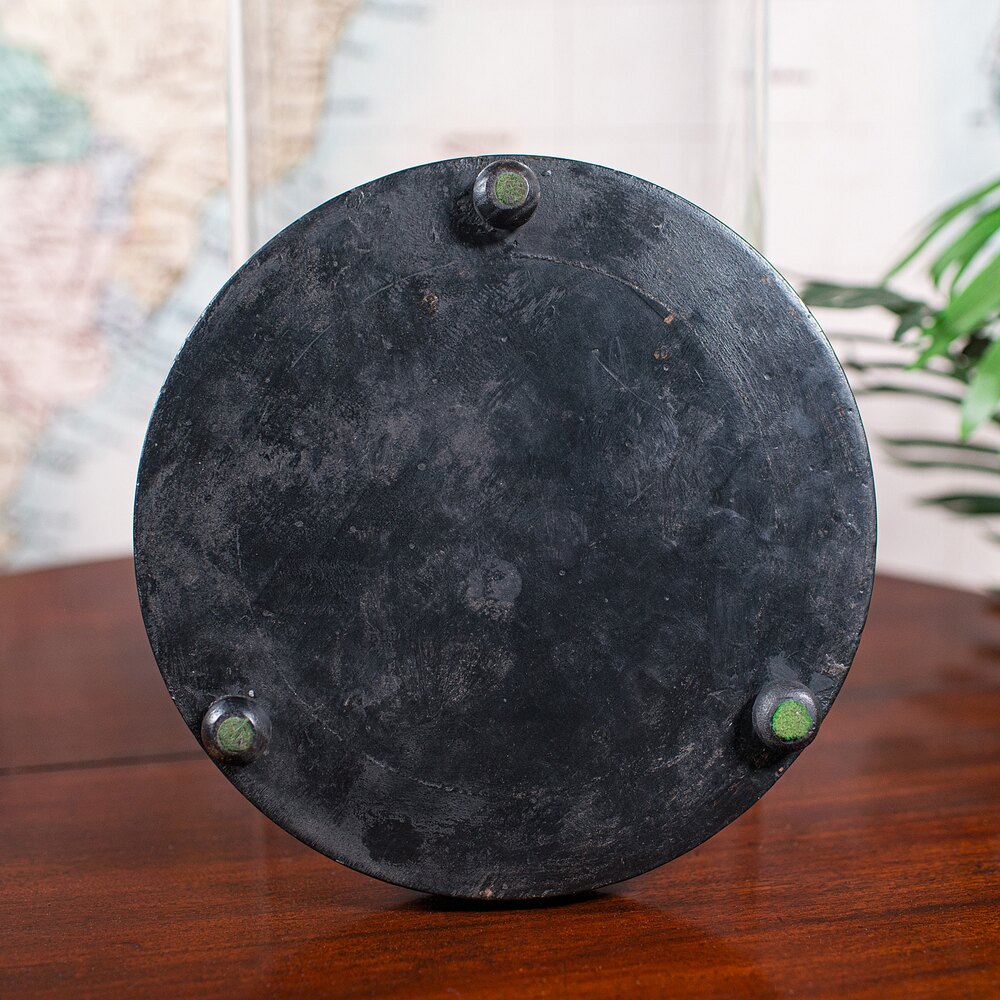 Raised upon a trio of bun feet, protected with green baize pads