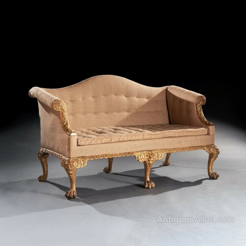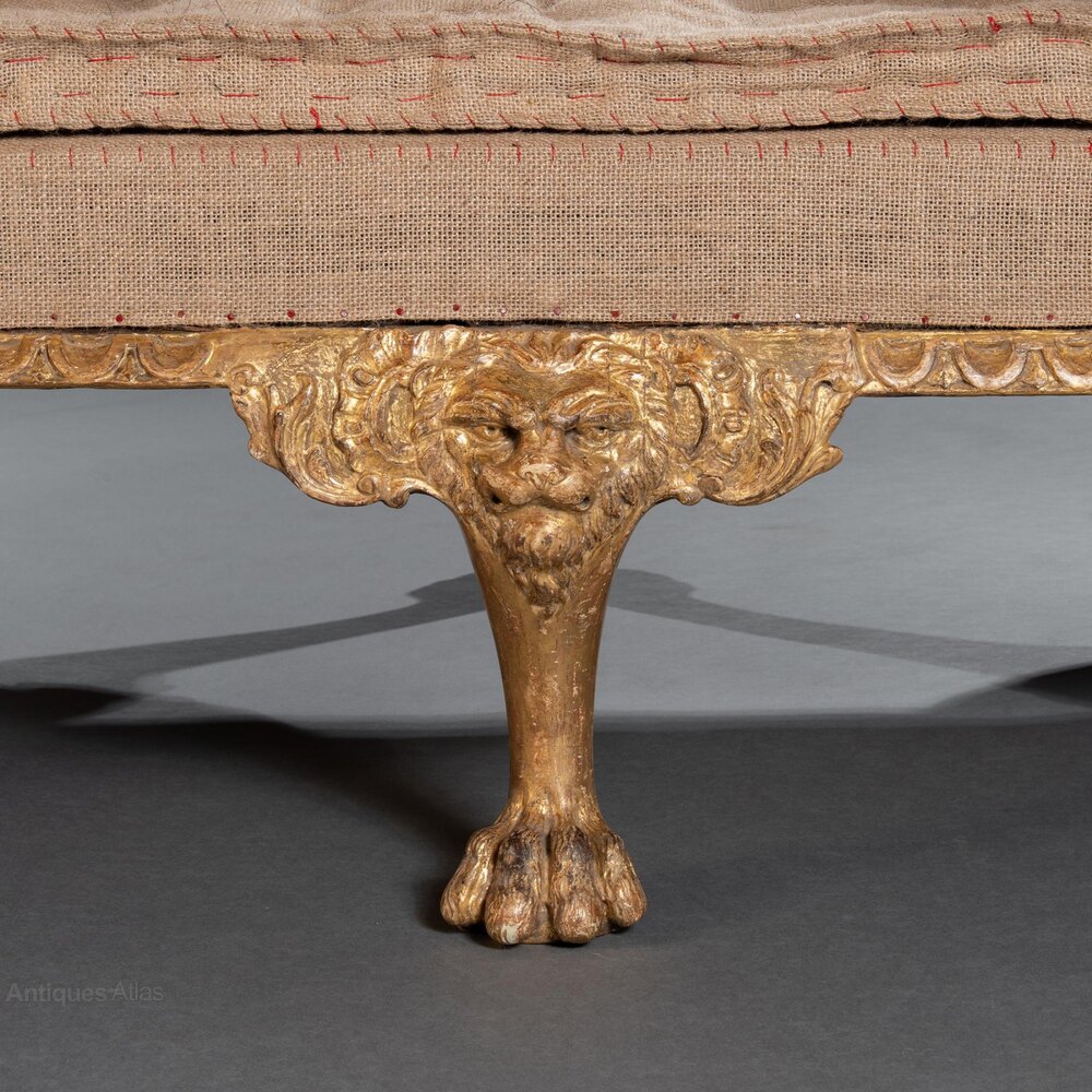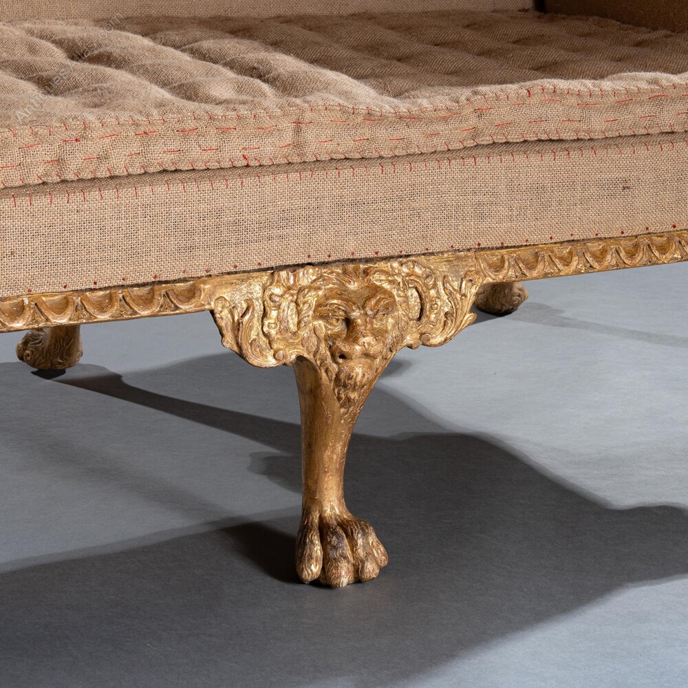 George II Giltwood Sofa on Lion Mask Hairy Paw Feet