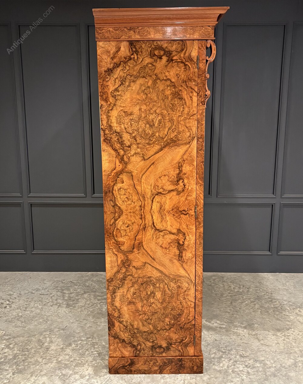 Crafted in richly figured burr walnut, this wardrobe displays outstanding grain patterns and a warm, glowing colour throughout.