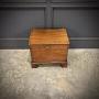 A charming small Georgian mahogany storage box featuring a hinged lid that opens to an open interior.Crafted in solid mahogany with a warm, well-preserved patina, the box displays fine dovetail joints to the front corners and a decorative brass escutcheon.