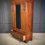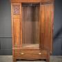The interior is fitted with a hanging rail and hooks, providing practical storage. Below, a generous single drawer forms the base, retaining its original brass handles and offering additional storage space.