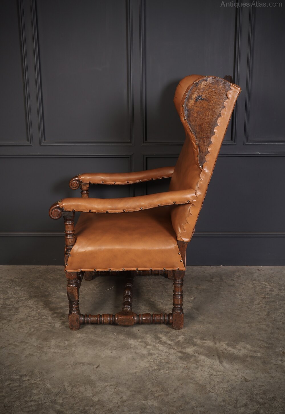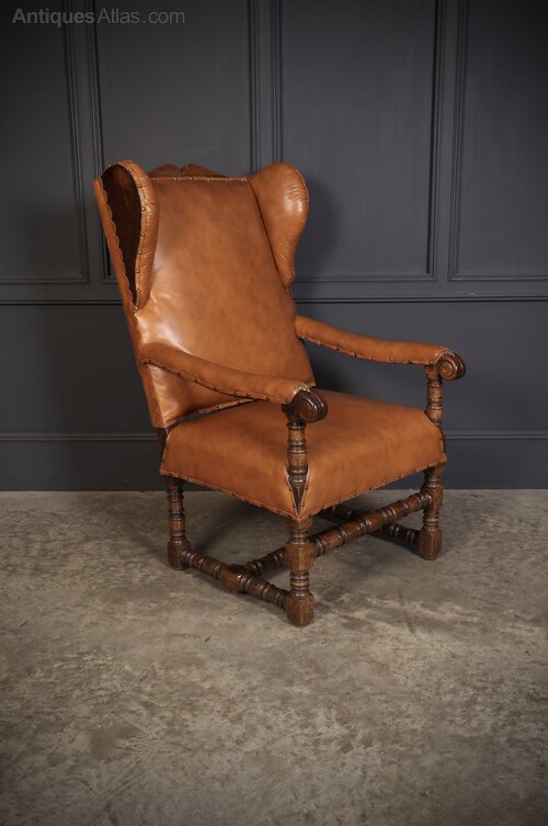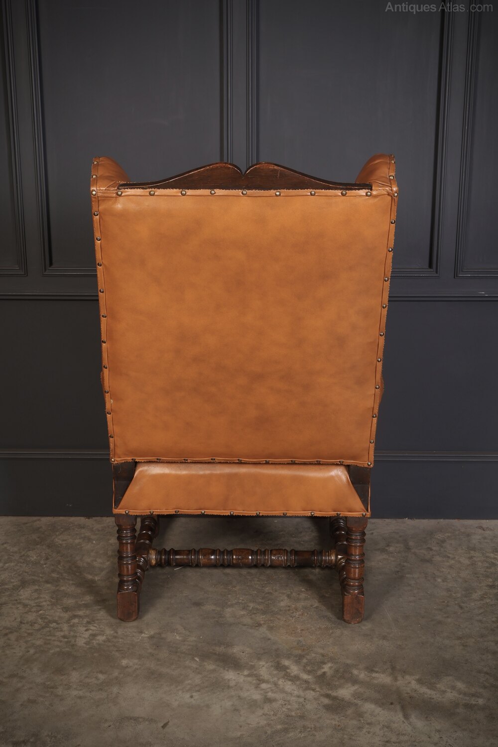 19th Century Oak & Leather Wingback Armchair