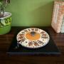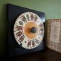 The spinner is in very good vintage condition, with some marks to the original vintage paper. There are 2 holes in the black wooden base that could be used to mount the spinner on the wall. Please examine the photographs and feel free to ask us any questions, or request more pictures.