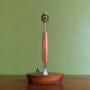 The lamp has been stripped and refinished in oil and wax to bring out the lovely colour and grain. It has been partially rewired and PAT tested it takes a standard bayonet cap (B22) bulb. The shade is in good vintage condition with minor wear to the bottom edge the brass has some patina. Please examine the photographs and feel free to ask us any questions, or request more pictures.