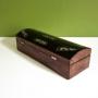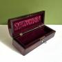 This is an antique rosewood Victorian jewellery box, dating from around 1870, lined in dark red velvet. It has delicate mother of pearl set into the domed top, matched by the escutcheon on the front. It is a perfect size for watches, necklaces and other jewellery, and would make an ideal gift for a woman or man.Dimensions: Width 25cm, Depth 9cm, Height 7cm.
