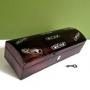 The box is in excellent condition with beautiful grain and shine, and only very minor marks. The lining is in very good condition, and the key turns smoothly. Please examine the photographs and feel free to ask us any questions, or request more pictures. Gift wrapping is available upon request.