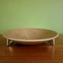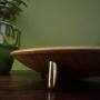 A 1960s shallow fruit bowl with 3 brass feet, made of heat and stain resistant melamine to mimic teak. The bowl has a fun, mid century 'atomic' style, with the added benefit that it can be wiped clean and won't be stained by fruit. The bowl was made in England by Ianthe, and has the original label on the underside.Dimensions: Diameter 23cm, Height 5cm.