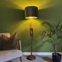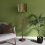 Teak and brass standard lamps are style icons of the 60s and 70s, and this one has a classic design with its abstract solid teak decoration half way up the brass stem. The lamp also has a solid teak base with 3 feet. The lamp has been paired with a modern green velvet shade lined in gold, which reflects the light beautifully - if preferred it can be purchased without the shade.The lamp is in very good vintage condition there is minor patina on the brass. The wood has been stripped and refinished in oil and protective wax. It has been rewired with gold flex and a black plug, has been PAT tested and is in working order. The lamp takes a standard bayonet cap bulb (B22).