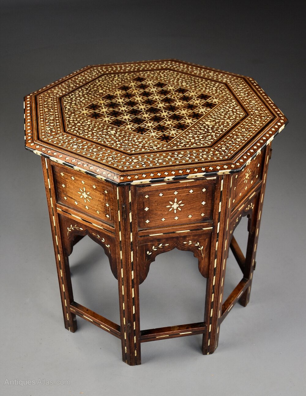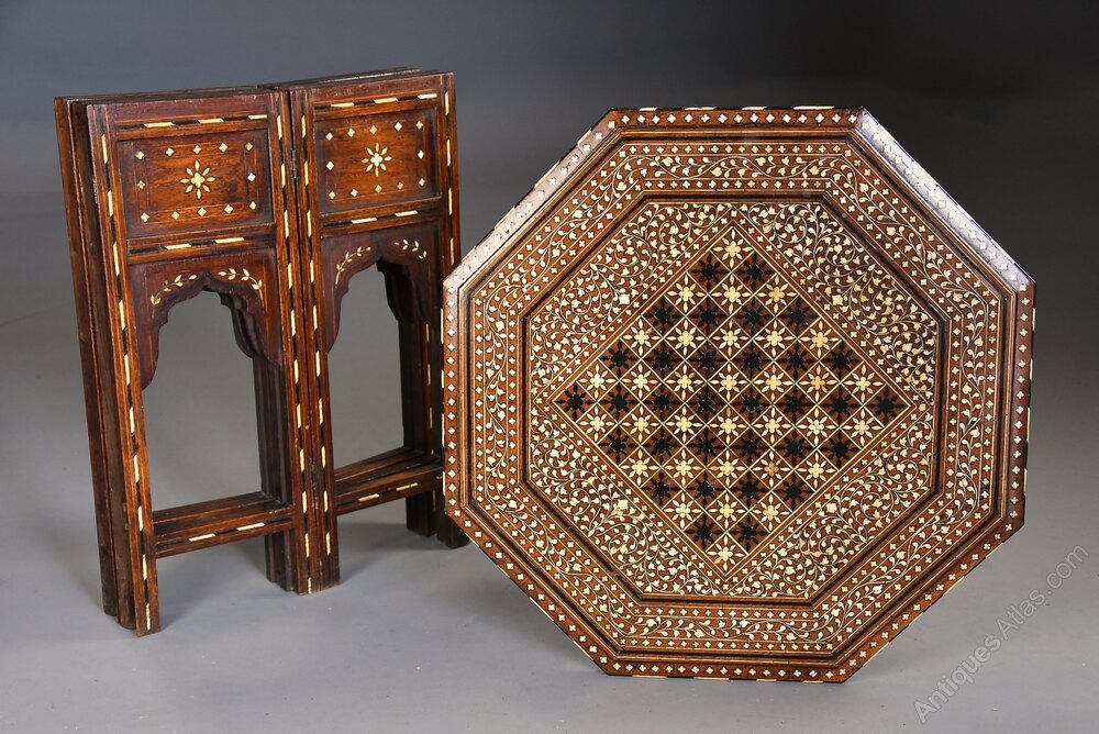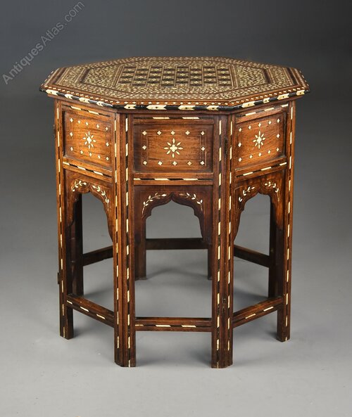 The Moorish style of furniture was very popular in Europe during the latter part of the 19th century with many areas in India producing similar items of superb quality, similar tables were sold by Liberty of London during the later 19th century.