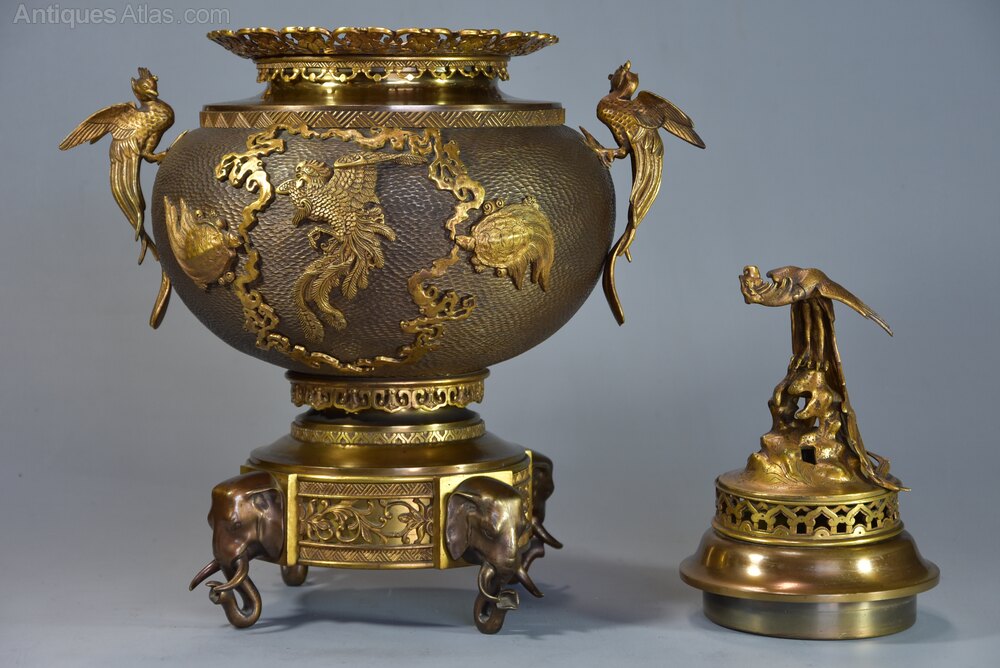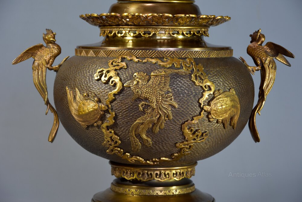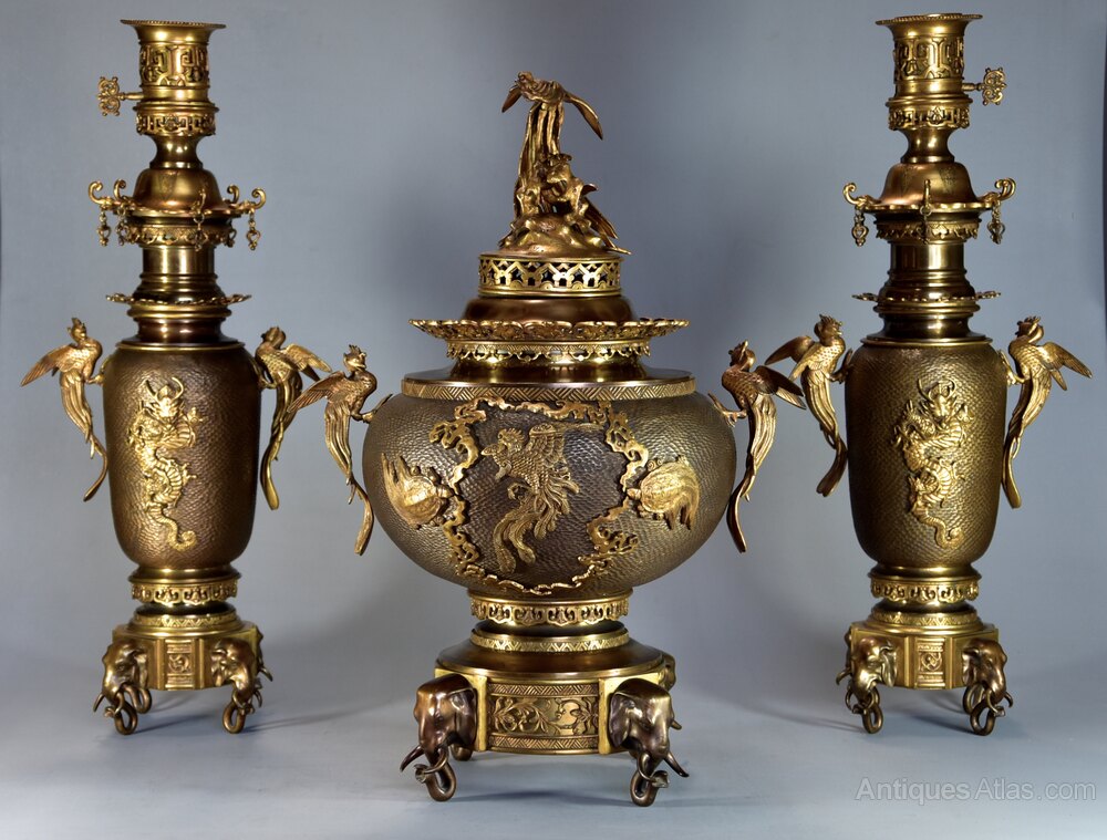 19thc French Japonisme bronze incense burner set