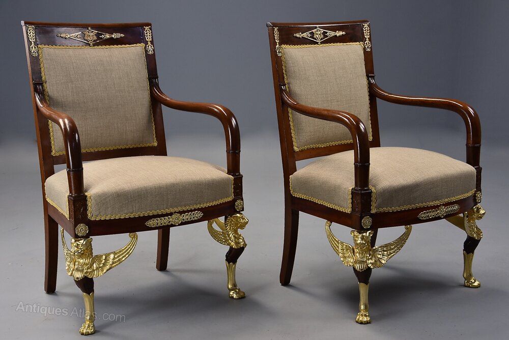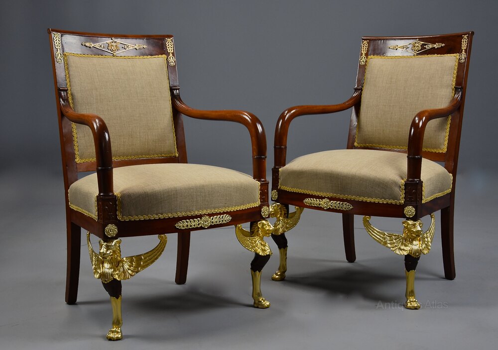 Pair of French Empire style mahogany fauteuils