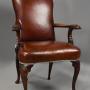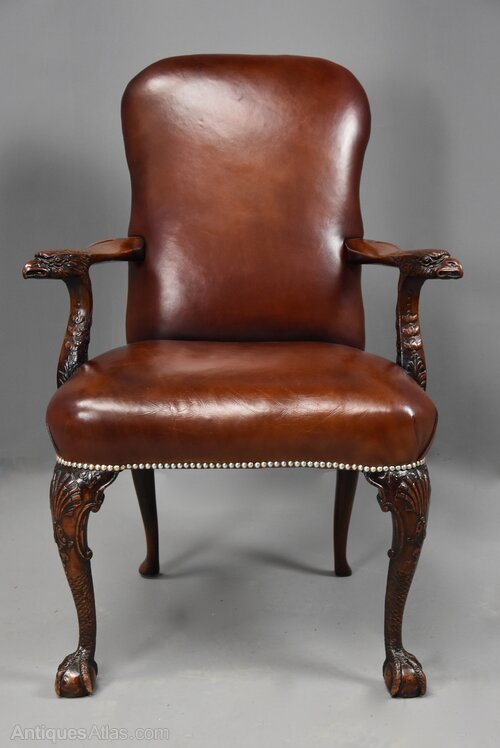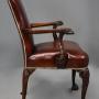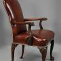 The armchair is supported by finely carved cabriole legs to the front with carved scallop shell and foliate design and terminating with a scaled ball and claw foot, the two back legs of slender cabriole design with part carved scallop shell and terminating with a pad foot.
