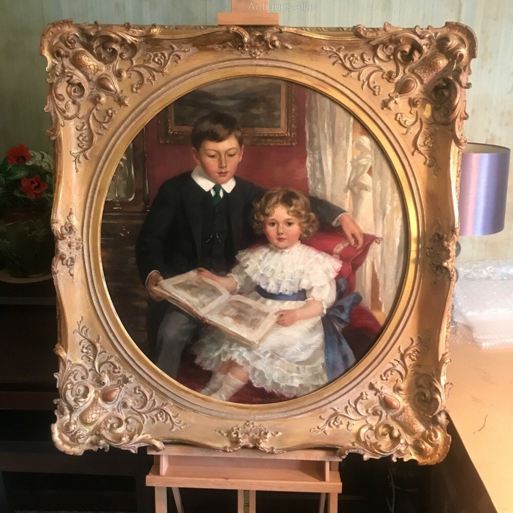 19th Oil Painting Of Children By Arthur Percy Dixon