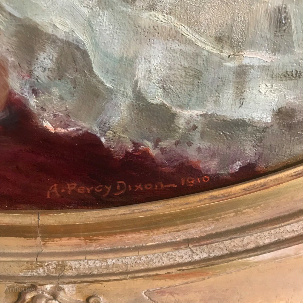 A charming early circa 1910 oil portrait on canvas in an oval mount depicting William and Constance Mair by Arthur Percy Dixon (act. 1884-1917).ABOUT ARTIST : Arthur Percy Dixon (act. 1884-1917)