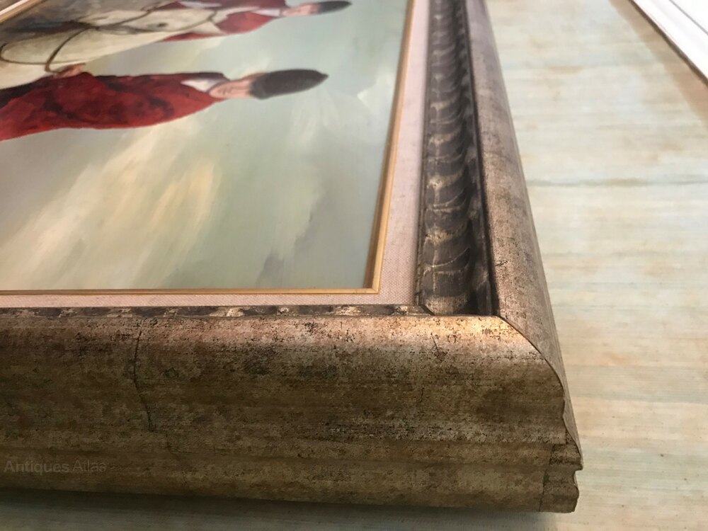 Fox Hunting Equestrian Oil Painting Grey Bay Hunter