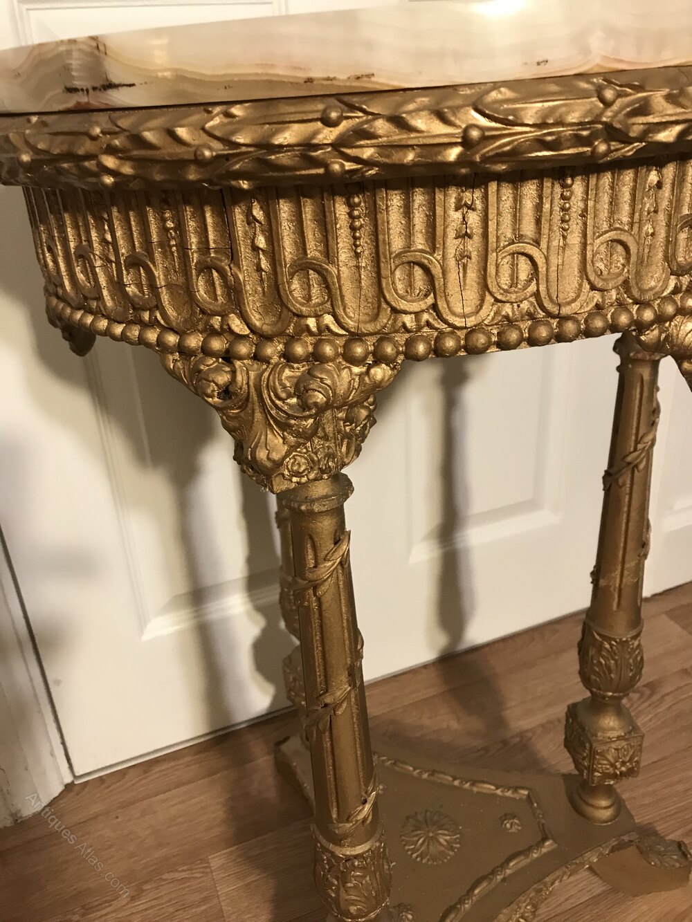 Very good for the age.Onyx top is in original order, woodwork re-gilded in past century.
