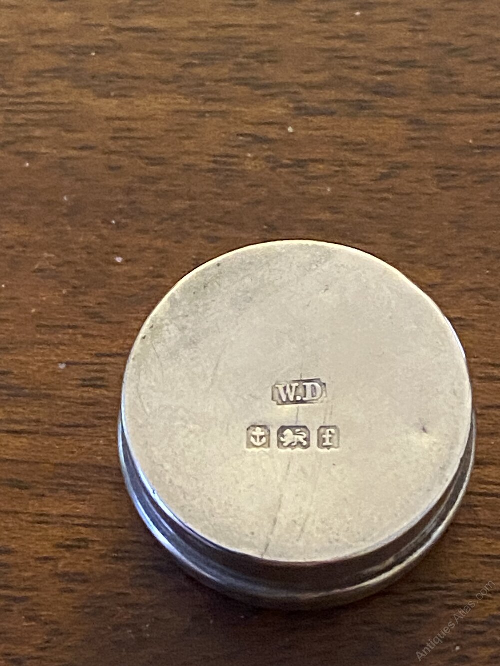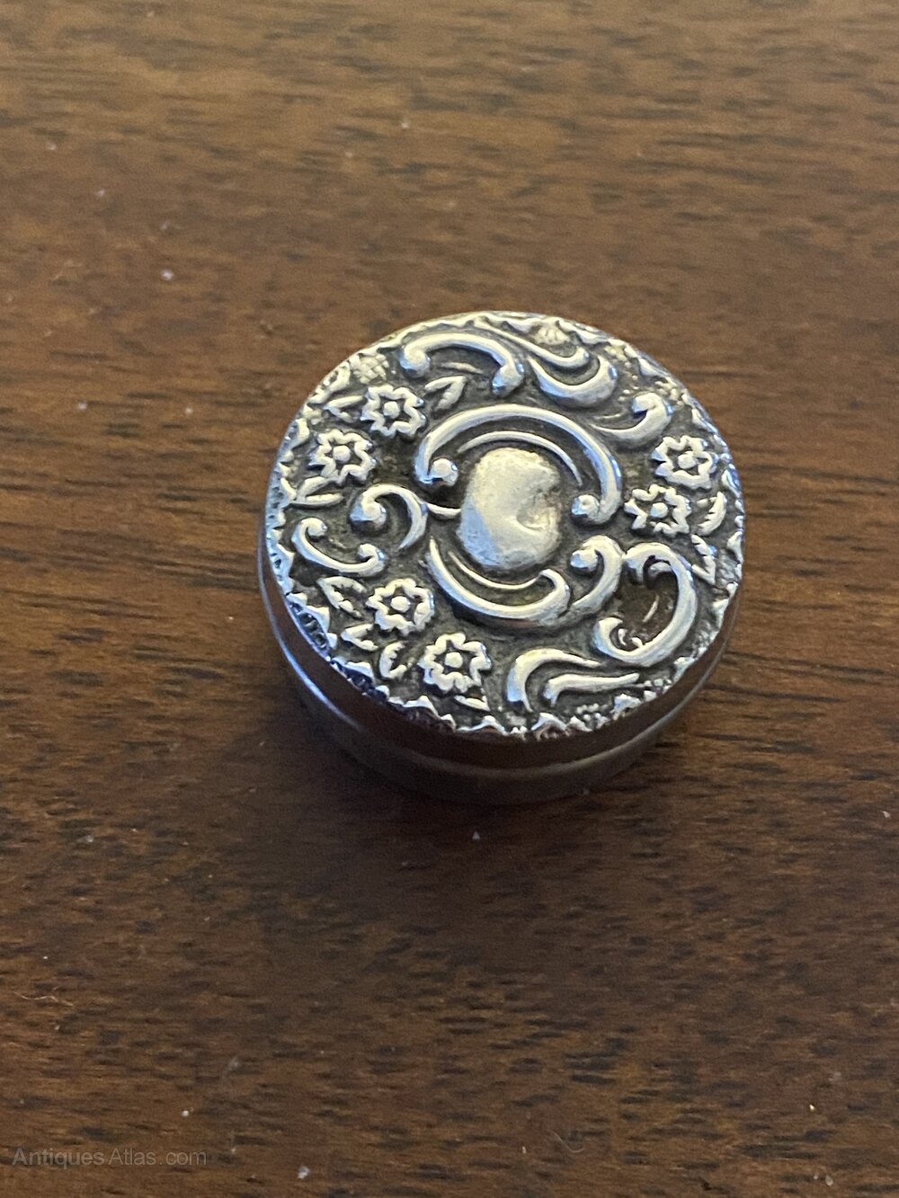 A small embossed silver pill pot, hallmarked for Birmingham 1905P and P included for items within the U K only.