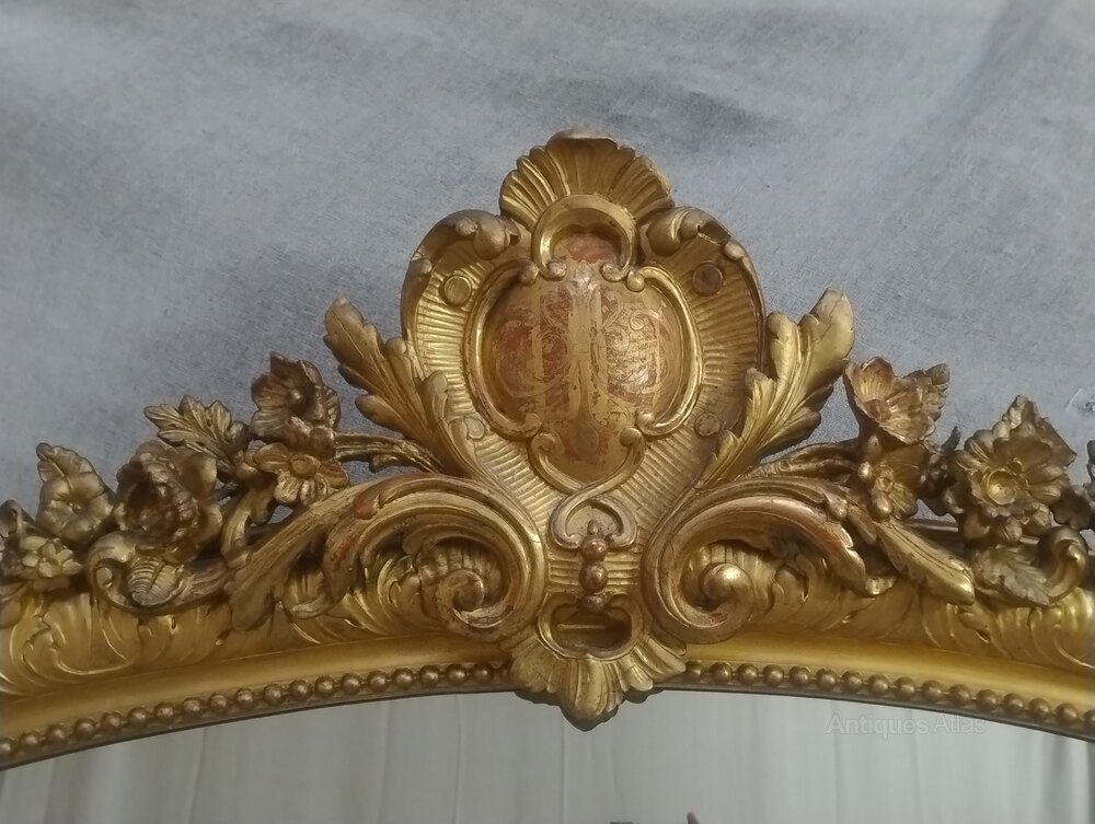 A very large French antique giltwood mirror of impressive proportions.In very much untouched original condition, retaining it's original gold leaf water / oil gilding in very good overall condition.