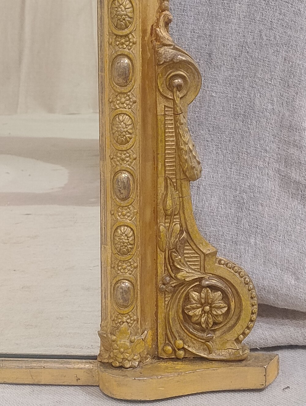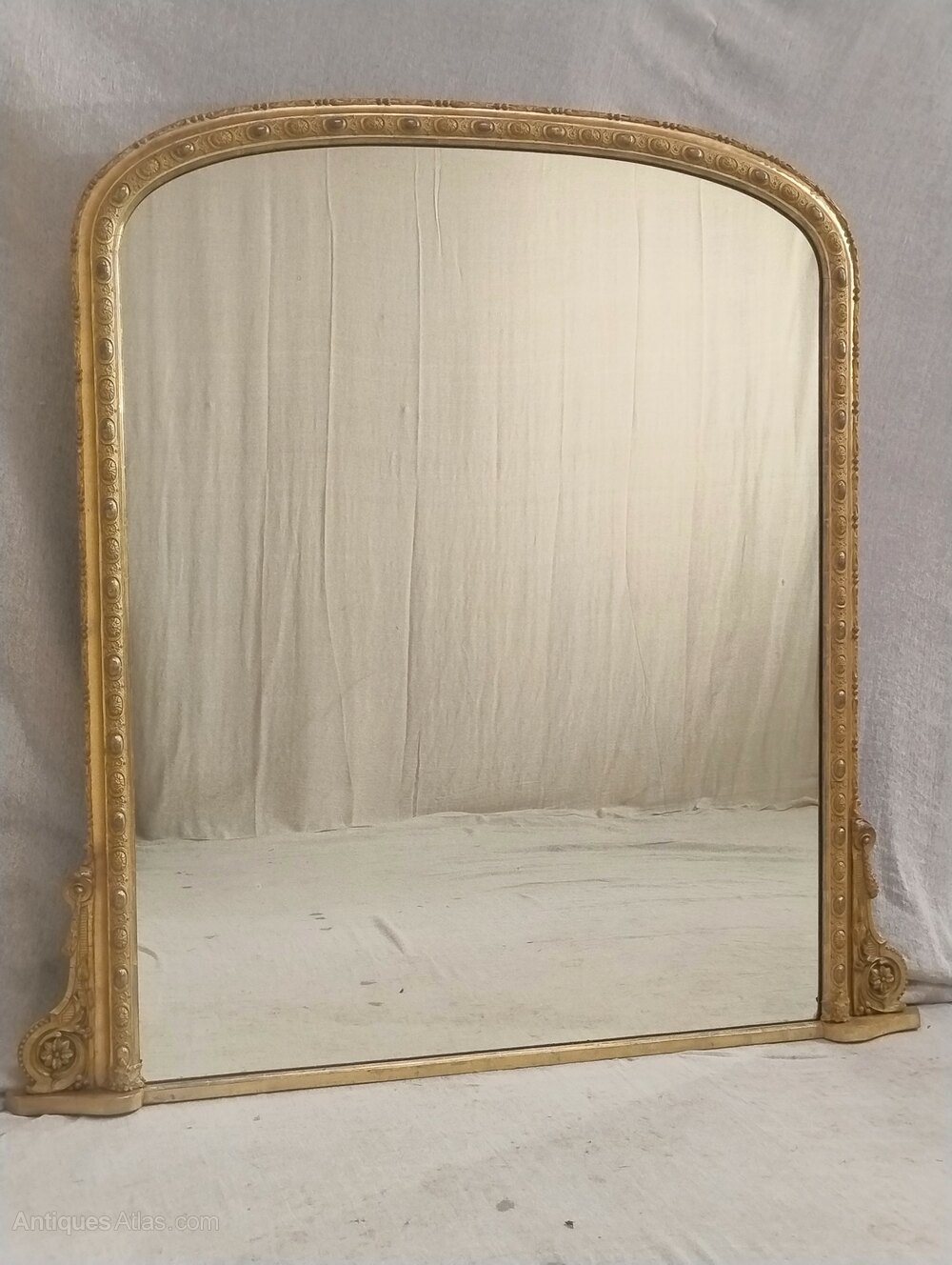 Large Antique Overmantel Mirror dating from 1880.This fine example retains it's original water/oil gilding which offers an attractive overall appearance, a nice mellow feel to the gold leaf.